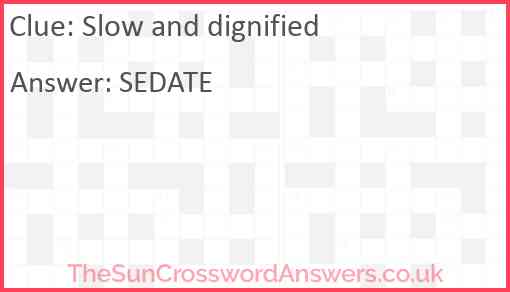 Slow and dignified is a crossword clue for which we have 1 possible answer and we have spotted 2 times in our database. This crossword clue was last seen on 18 November 2021 in The Sun Coffee Time Crossword puzzle!
