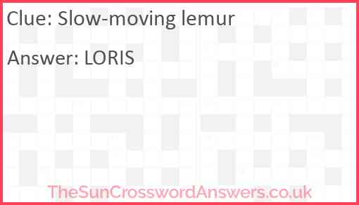 Slow-moving lemur is a crossword clue for which we have 1 possible answer and we have spotted 1 times in our database. This crossword clue was last seen on 25 November 2023 in The Sun Coffee Time Crossword puzzle!