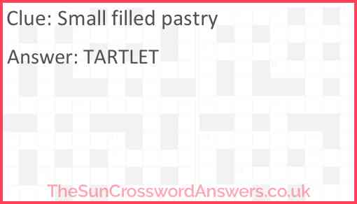 Small filled pastry is a crossword clue for which we have 1 possible answer and we have spotted 3 times in our database. This crossword clue was last seen on 09 February 2024 in The Sun Coffee Time Crossword puzzle!
