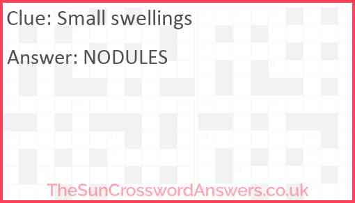 Small swellings is a crossword clue for which we have 1 possible answer and we have spotted 2 times in our database. This crossword clue was last seen on 30 July 2023 in The Sun Coffee Time Crossword puzzle!