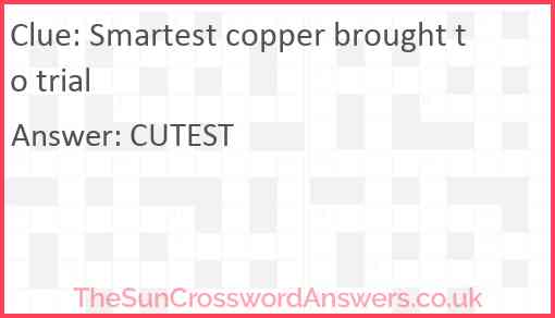 Smartest copper brought to trial is a crossword clue for which we have 1 possible answer and we have spotted 2 times in our database. This crossword clue was last seen on 16 December 2023 in The Sun Cryptic Crossword puzzle!
