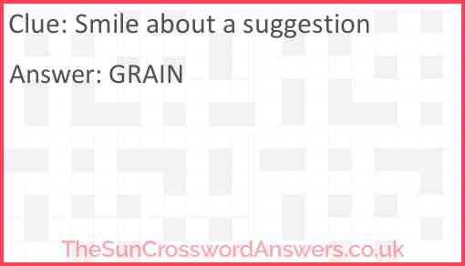 Smile about a suggestion is a crossword clue for which we have 1 possible answer and we have spotted 2 times in our database. This crossword clue was last seen on 21 March 2024 in The Sun Cryptic Crossword puzzle!