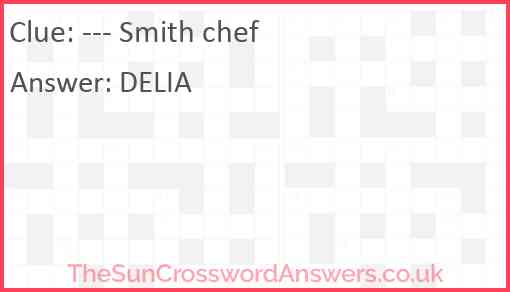 --- Smith chef is a crossword clue for which we have 1 possible answer and we have spotted 1 times in our database. This crossword clue was last seen on 26 February 2020 in The Sun Coffee Time Crossword puzzle!