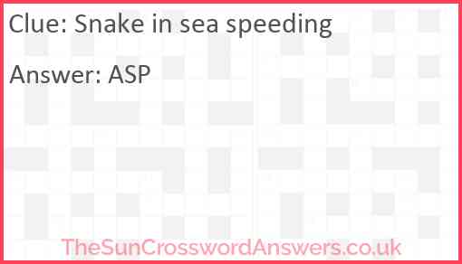 Snake in sea speeding is a crossword clue for which we have 1 possible answer and we have spotted 2 times in our database. This crossword clue was last seen on 03 October 2024 in The Sun Cryptic Crossword puzzle!