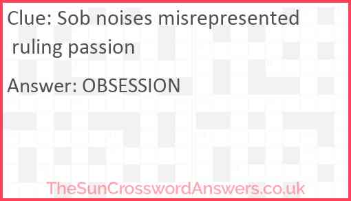 Sob noises misrepresented ruling passion is a crossword clue for which we have 1 possible answer and we have spotted 1 times in our database. This crossword clue was last seen on 01 October 2021 in The Sun Cryptic Crossword puzzle!