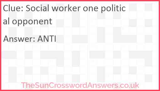 Social worker one political opponent is a crossword clue for which we have 1 possible answer and we have spotted 2 times in our database. This crossword clue was last seen on 20 November 2022 in The Sun Cryptic Crossword puzzle!