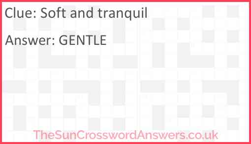 Soft and tranquil is a crossword clue for which we have 1 possible answer and we have spotted 9 times in our database. This crossword clue was last seen on 04 April 2024 in The Sun Coffee Time Crossword puzzle!