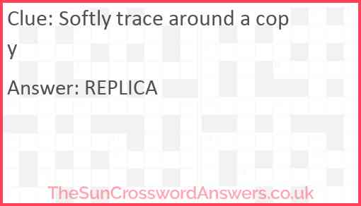 Softly trace around a copy is a crossword clue for which we have 1 possible answer and we have spotted 1 times in our database. This crossword clue was last seen on 19 May 2022 in The Sun Cryptic Crossword puzzle!