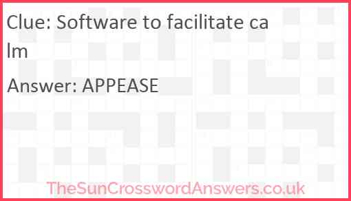 Software to facilitate calm is a crossword clue for which we have 1 possible answer and we have spotted 2 times in our database. This crossword clue was last seen on 01 May 2025 in The Sun Cryptic Crossword puzzle!