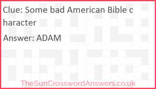 Some bad American Bible character is a crossword clue for which we have 1 possible answer and we have spotted 1 times in our database. This crossword clue was last seen on 27 November 2021 in The Sun Cryptic Crossword puzzle!