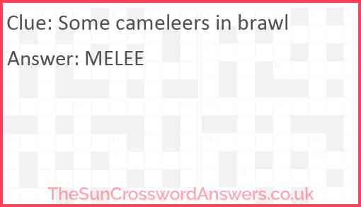 Some cameleers in brawl is a crossword clue for which we have 1 possible answer and we have spotted 2 times in our database. This crossword clue was last seen on 07 December 2024 in The Sun Cryptic Crossword puzzle!