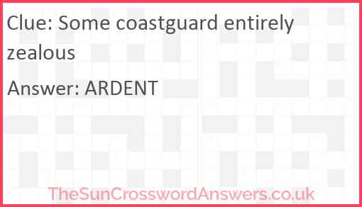 Some coastguard entirely zealous is a crossword clue for which we have 1 possible answer and we have spotted 2 times in our database. This crossword clue was last seen on 17 December 2024 in The Sun Cryptic Crossword puzzle!