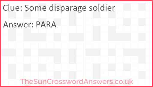 Some disparage soldier is a crossword clue for which we have 1 possible answer and we have spotted 1 times in our database. This crossword clue was last seen on 02 April 2025 in The Sun Cryptic Crossword puzzle!