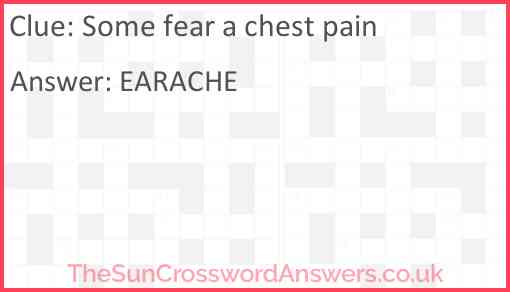 Some fear a chest pain is a crossword clue for which we have 1 possible answer and we have spotted 4 times in our database. This crossword clue was last seen on 16 June 2024 in The Sun Cryptic Crossword puzzle!