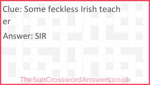 Some feckless Irish teacher is a crossword clue for which we have 1 possible answer and we have spotted 3 times in our database. This crossword clue was last seen on 19 August 2023 in The Sun Cryptic Crossword puzzle!
