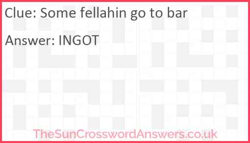 Some fellahin go to bar is a crossword clue for which we have 1 possible answer and we have spotted 2 times in our database. This crossword clue was last seen on 23 September 2022 in The Sun Cryptic Crossword puzzle!