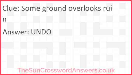 Some ground overlooks ruin is a crossword clue for which we have 1 possible answer and we have spotted 2 times in our database. This crossword clue was last seen on 20 March 2023 in The Sun Cryptic Crossword puzzle!