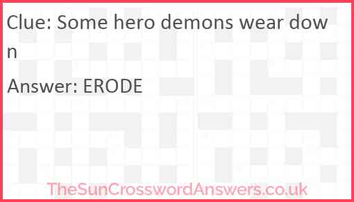 Some hero demons wear down is a crossword clue for which we have 1 possible answer and we have spotted 4 times in our database. This crossword clue was last seen on 21 January 2025 in The Sun Cryptic Crossword puzzle!