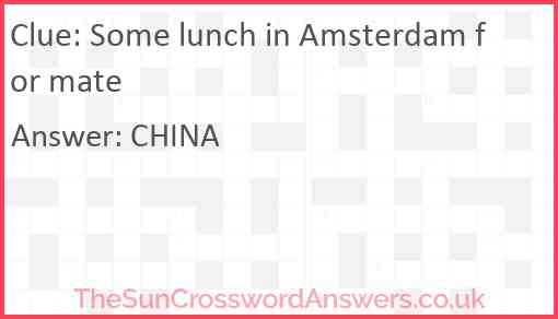 Some lunch in Amsterdam for mate is a crossword clue for which we have 1 possible answer and we have spotted 1 times in our database. This crossword clue was last seen on 25 May 2023 in The Sun Cryptic Crossword puzzle!