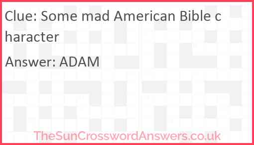 Some mad American Bible character is a crossword clue for which we have 1 possible answer and we have spotted 1 times in our database. This crossword clue was last seen on 06 March 2019 in The Sun Cryptic Crossword puzzle!
