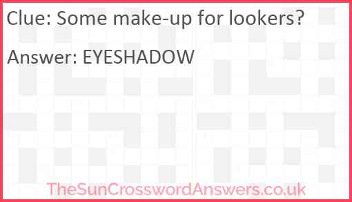 Some make-up for lookers? is a crossword clue for which we have 1 possible answer and we have spotted 2 times in our database. This crossword clue was last seen on 03 July 2024 in The Sun Cryptic Crossword puzzle!