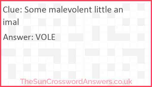 Some malevolent little animal is a crossword clue for which we have 1 possible answer and we have spotted 2 times in our database. This crossword clue was last seen on 10 May 2024 in The Sun Cryptic Crossword puzzle!