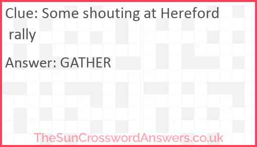 Some shouting at Hereford rally is a crossword clue for which we have 1 possible answer and we have spotted 1 times in our database. This crossword clue was last seen on 19 August 2020 in The Sun Cryptic Crossword puzzle!