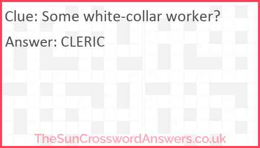 Some white-collar worker? is a crossword clue for which we have 1 possible answer and we have spotted 2 times in our database. This crossword clue was last seen on 19 May 2024 in The Sun Cryptic Crossword puzzle!