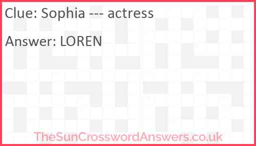 Sophia --- actress is a crossword clue for which we have 1 possible answer and we have spotted 1 times in our database. This crossword clue was last seen on 10 April 2020 in The Sun Coffee Time Crossword puzzle!