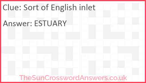 Sort of English inlet is a crossword clue for which we have 1 possible answer and we have spotted 3 times in our database. This crossword clue was last seen on 18 March 2021 in The Sun Cryptic Crossword puzzle!