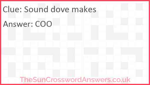 Sound dove makes is a crossword clue for which we have 1 possible answer and we have spotted 5 times in our database. This crossword clue was last seen on 29 October 2023 in The Sun Coffee Time Crossword puzzle!
