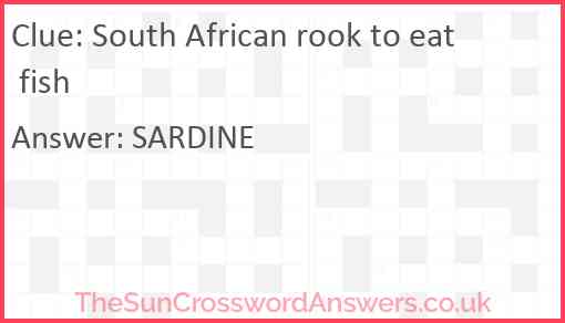 South African rook to eat fish is a crossword clue for which we have 1 possible answer and we have spotted 5 times in our database. This crossword clue was last seen on 02 October 2024 in The Sun Cryptic Crossword puzzle!