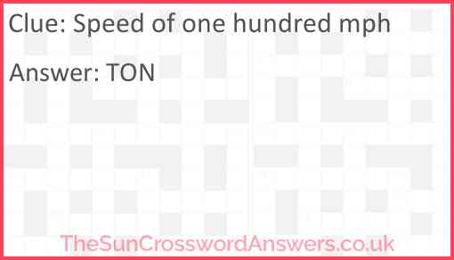 Speed of one hundred mph is a crossword clue for which we have 1 possible answer and we have spotted 1 times in our database. This crossword clue was last seen on 06 September 2018 in The Sun Coffee Time Crossword puzzle!