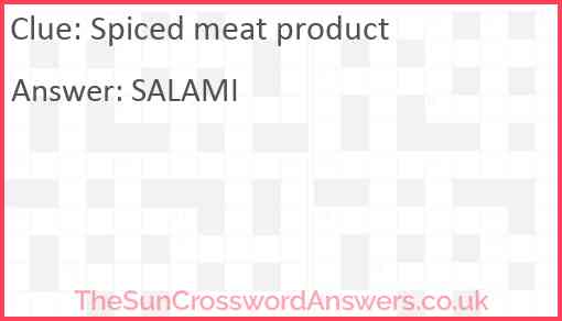 Spiced meat product is a crossword clue for which we have 1 possible answer and we have spotted 1 times in our database. This crossword clue was last seen on 30 December 2023 in The Sun Coffee Time Crossword puzzle!