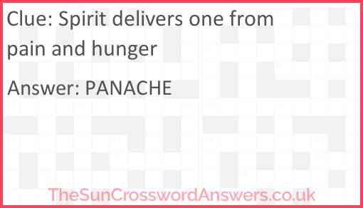 Spirit delivers one from pain and hunger is a crossword clue for which we have 1 possible answer and we have spotted 3 times in our database. This crossword clue was last seen on 01 February 2024 in The Sun Cryptic Crossword puzzle!