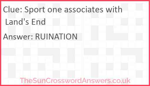 Sport one associates with Land's End is a crossword clue for which we have 1 possible answer and we have spotted 1 times in our database. This crossword clue was last seen on 22 September 2024 in The Sun Cryptic Crossword puzzle!