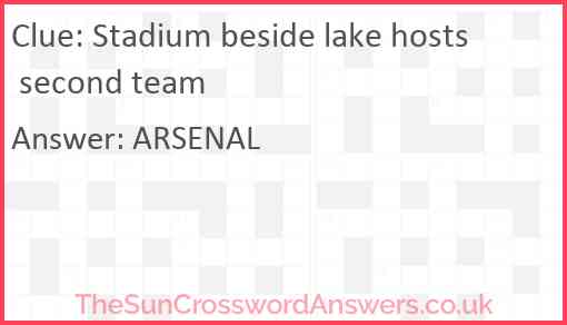 Stadium beside lake hosts second team is a crossword clue for which we have 1 possible answer and we have spotted 1 times in our database. This crossword clue was last seen on 01 September 2021 in The Sun Cryptic Crossword puzzle!