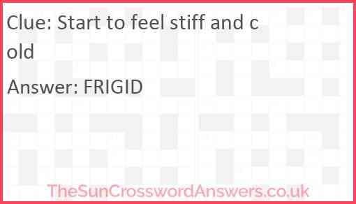Start to feel stiff and cold is a crossword clue for which we have 1 possible answer and we have spotted 3 times in our database. This crossword clue was last seen on 08 March 2025 in The Sun Cryptic Crossword puzzle!