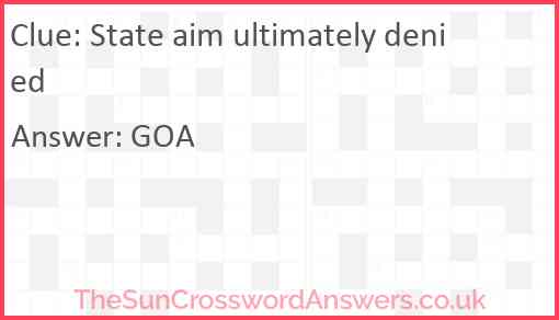 State aim ultimately denied is a crossword clue for which we have 1 possible answer and we have spotted 3 times in our database. This crossword clue was last seen on 07 March 2025 in The Sun Cryptic Crossword puzzle!