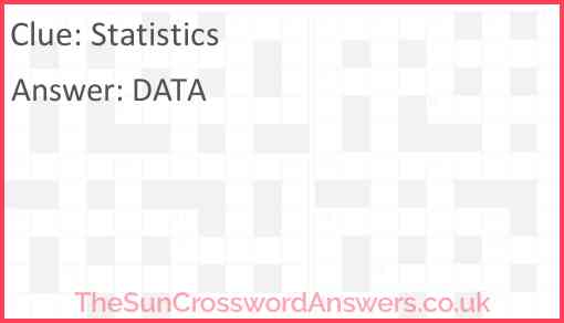 Statistics is a crossword clue for which we have 1 possible answer and we have spotted 29 times in our database. This crossword clue was last seen on 13 May 2025 in The Sun Coffee Time Crossword puzzle!