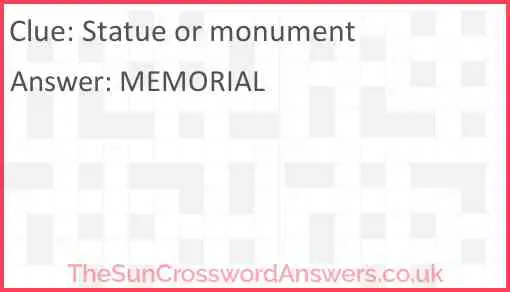 Statue or monument is a crossword clue for which we have 1 possible answer and we have spotted 2 times in our database. This crossword clue was last seen on 15 July 2022 in The Sun Coffee Time Crossword puzzle!