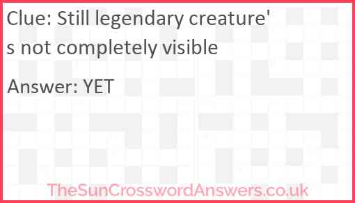 Still legendary creature's not completely visible is a crossword clue for which we have 1 possible answer and we have spotted 1 times in our database. This crossword clue was last seen on 05 December 2024 in The Sun Cryptic Crossword puzzle!