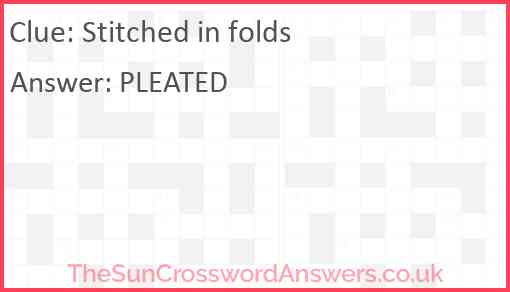 Stitched in folds is a crossword clue for which we have 1 possible answer and we have spotted 5 times in our database. This crossword clue was last seen on 24 November 2024 in The Sun Coffee Time Crossword puzzle!