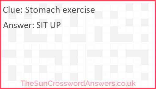 Stomach exercise is a crossword clue for which we have 1 possible answer and we have spotted 1 times in our database. This crossword clue was last seen on 22 April 2019 in The Sun Coffee Time Crossword puzzle!