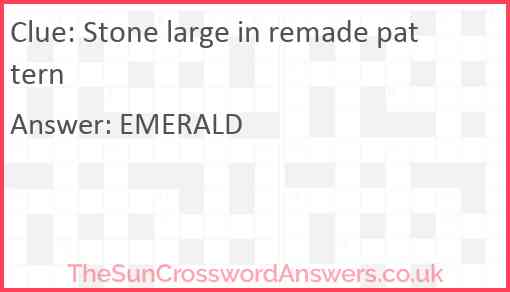 Stone large in remade pattern is a crossword clue for which we have 1 possible answer and we have spotted 2 times in our database. This crossword clue was last seen on 05 February 2024 in The Sun Cryptic Crossword puzzle!
