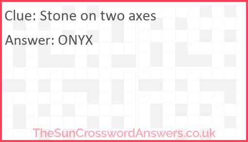 Stone on two axes is a crossword clue for which we have 1 possible answer and we have spotted 2 times in our database. This crossword clue was last seen on 14 May 2023 in The Sun Cryptic Crossword puzzle!