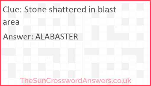 Stone shattered in blast area is a crossword clue for which we have 1 possible answer and we have spotted 1 times in our database. This crossword clue was last seen on 15 August 2020 in The Sun Cryptic Crossword puzzle!