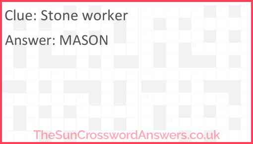 Stone worker is a crossword clue for which we have 1 possible answer and we have spotted 8 times in our database. This crossword clue was last seen on 23 October 2023 in The Sun Coffee Time Crossword puzzle!