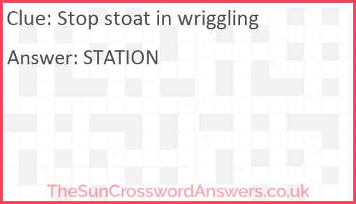 Stop stoat in wriggling is a crossword clue for which we have 1 possible answer and we have spotted 2 times in our database. This crossword clue was last seen on 27 November 2021 in The Sun Cryptic Crossword puzzle!