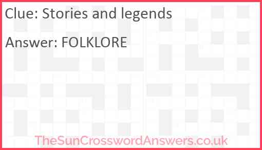 Stories and legends is a crossword clue for which we have 1 possible answer and we have spotted 2 times in our database. This crossword clue was last seen on 03 March 2025 in The Sun Coffee Time Crossword puzzle!